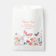 Joli petit sac cadeau d'anniversaire avec des fleurs colorées en rose, violet et orange, papillons et feuillage. Parfait pour une douche nuptiale de printemps ou d'été. Les mots peuvent être changés en fonction de vos propres détails ou exigences.