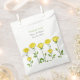 Sac de faveur de mariage de fleurs de rose jaune romantique floral Merci. Partagez votre gratitude avec style avec ce charmant sac de faveur de mariage présentant un design de rose jaune romantique. Un arrangement délicat de roses jaunes et de feuilles vertes coule gracieusement à travers le sac. Il est personnalisé avec "Merci" et les noms des mariés tandis que sa couleur jaune chaud ajoute à la romance de votre journée spéciale.