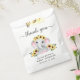 Merci à votre fête sacs de faveur pour votre douche bébé fille avec "merci" écrit dans un script gris mou avec des swashes et une aquarelle rose pastel d'un éléphant bébé orné de tournesols. Personnalisez le nom et la date de la douche de la future mère dans une simple typographie grise.