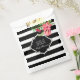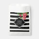 Elégantes rayures noires et blanches avec fleurs exotiques roses et rouges. Modèle de sacs de faveur personnalisables