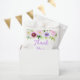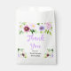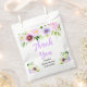 Ce magnifique sac de faveur de mariage élégant présente des fleurs violettes et du feuillage à l'aquarelle. Le texte combine une écriture manuscrite et des polices serif pour un look stylé et moderne. C'est parfait pour un mariage rustique de printemps.