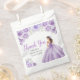 This quinceanera favor bag features a beautiful princess in a dusty purple ball gown with floral arrangements. This is perfect for a quinceanera birthday party.
