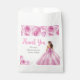 This quinceanera favor bag features a beautiful princess in a light pink ball gown with floral arrangements. This is perfect for a quinceanera birthday party.