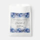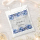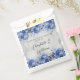 Un arrière - plan élégant à l'aspect faux argent décoré de fleurs et de mousseux bleus. Avec le texte : Mariage et Merci pour célébrer avec nous. Personnalisez et ajoutez vos noms.