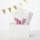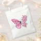 Flower arrangement of pink butterfly with rose Japanese cherry blossoms on white background.