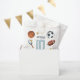Ce modèle de sac de faveur anniversaire de enfant, mignon et moderne, a pour thème le sport et propose un dessin animé de sport bleu, avec un ballon de basket, de football, de football, de raquette de tennis, un trophée et des étoiles. Le sac peut être personnalisé avec votre nom de garçon, et l'âge. L'addition sportive parfaite à la fête de votre enfant.