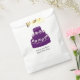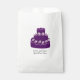 Un joli design avec un gâteau mariage à trois niveaux violet avec des fleurs et des accents de perles. Customisez en ajoutant les noms et la date selon vos besoins.