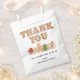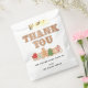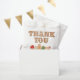 Ce sac-cadeau d'échange de biscuits contient une collection de biscuits festifs de Noël avec un texte qui dit "Merci" en utilisant des lettres en forme de biscuits sur un arrière - plan blanc. Vous pouvez personnaliser avec votre nom de famille. Coordonner avec la collection Christmas Cookie Exchange.