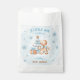 A little man is on the way! Christmas boy baby shower favor bags with an adorable gingerbread man, Christmas tree, gift and snowflakes all in baby blue and beige. Easily personalize all the text.