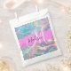 Nom monogramme irisé holographique de l'arc-en-ciel et sacs de faveur initiaux. Votre nom personnalisé et votre monogramme sont écrits dans un élégant script écrit à la main avec un arrière - plan rose. Un cadeau d'anniversaire ou de Noël parfait !
