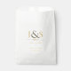 Ce sac de faveur minimaliste fait partie d'une suite mariage art déco sophistiquée, avec des cadres luxueux et des détails dorés chatoyants et complexes. Les lignes classiques dégagent un charme vintage glamour, avec une palette de couleurs noir, or brillant et gris chaud. Les détails ornés ajoutent une touche de sophistication à ce design intemporel. Ajoutez vos initiales, la date du mariage et le message de remerciement en utilisant le modèle fourni. Recherchez ID1033 pour voir d'autres produits mariages dans le jeu de conceptions.