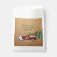 Ces sacs de faveur de Noël mignons sont munis d'un camion rouge rustique avec trois enfants en nome à l'arrière. Papa Gnome se tient devant le camion. La typographie dit que le Merci est venu à notre fête de Noël annuelle. La neige tombe tout autour d'eux et il y a des étoiles qui scintillent dans le ciel. Arrière - plan est un faux look de papier kraft.