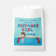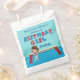 Ce mignon sac de fête d'anniversaire de gymnastique de filles présente une jolie brune fille de gymnastique debout devant un poutre. Elle porte un leotard rouge et sourit aux invitations pour sa fête amusante avec des enfants en train d'agiter au gymnase local. Beau cadeau personnalisé bleu pour votre petite fille.