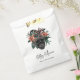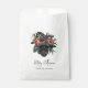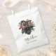 Un design éffrayant et chic d'Halloween, avec une illustration d'un crâne tropical fleuri surmonté de fleurs d'île orange et bordeaux et de feuillage de jungle verte sur un arrière - plan noir fumé. Personnalisez ce sac de faveur Halloween unique et élégant avec deux lignes de texte personnalisé.