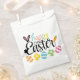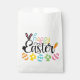 A Colorful Happy Easter Party Favor Bag With A Cute Script Design Into A Rabbit With Eggs
