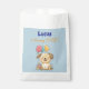 Fully customizable text! - Let’s pawty! Celebrate your little boy's 1st birthday with these “Happy Puppy” favor bags. Featuring a kawaii-style design, they showcase a sweet puppy holding balloons alongside a birthday cake topped with a single candle as well as the message "(birthday boy's name) is turning ONE" - or customize as needed. Perfect for a joyful first birthday celebration and a cute little fun bag for take-home gifts for guests. Designed by Best Baby Gifts - given with love.