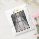 Parfait pour toute mariée avec charme girlish et style vintage. Une belle robe de mariage sirène à peine rose dans une vitrine vintage chic, l'intérieur de la carte représente l'intérieur du magasin, la robe et le voile ayant été enlevés de la forme de robe et enveloppés dans de grandes boîtes roses avec des arcs roses. Idéal pour la mariée, félicitations fiançailles ou événements liés au mariage.