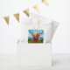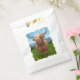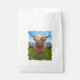 Parade animal mignonne Highland Cow Party Les sacs préférés sont parfaits pour votre enfant amoureux des animaux pour sa fête d'anniversaire à thème animal Highland Cow. Notre oeuvre d'art animal est composée d'une adorable vache brun poilue et bronzée avec une boule de cheveux blonds recouvrant un oeil et d'énormes cornes en courbe se dressant dans un ciel bleu peint en éclaboussure. Elle se tient dans un champ de verdure haut avec des fleurs blanches et des montagnes enneigées dans l'arrière - plan. Cette vache poilue amusante, ou comme les habitants les appellent, Hairy Coos est sûr d'apporter des sourires !
