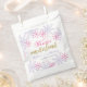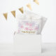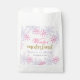 Mignons sacs de faveur "hiver onederland" de premier anniversaire, avec des flocons de neige violets et roses. Illustration numérique de Kristine Lee. Pour en savoir plus, visitez le site www.kristineleedesigns.com