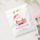 Sacs de faveur de Noël avec l'illustration d'un Père Noël mignon tenant une boîte cadeau avec le texte "Joyeux Noël" dans une police rouge, lunatique ci-dessous.