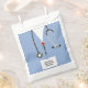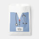 Des sacs de faveur créatifs sur le thème médical avec des gommages d'hôpital bleu. Modifier le texte pour personnaliser.
