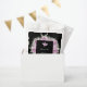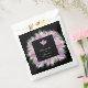 Les sacs de faveur plats présentent vos détails en lettres chic et d'élégantes aquarelles violet et blanc fleurs de magnolia et feuilles sur un arrière - plan noir. OBJETS CORRESPONDANTS dans notre magasin.