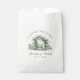 Ce mariage romantique avec sac de faveur de mariage dispose d'une arche mariage fleurie et d'une fontaine avec une typographie grise personnalisable sur un arrière - plan blanc.