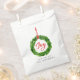 Des sacs rustiques de fête de fête avec une couronne d'aquarelle verte accrochée par un ruban rouge avec "Joy" dans un script rouge. Personnalisez les sacs de faveur de Noël en ajoutant un accueil personnalisé et votre nom. Parfait pour les fêtes de Noël, les mariages de vacances, etc.