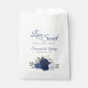 Ces beaux sacs de gâterie sont parfaits pour une table de régal à votre réception de mariage. Elles présentent un joli design boho chic avec un ensemble de roses aquarelles peints à la main dans des tons bleu poussiéreux, bleu marine et indigo. L'élégant texte du script dit "L'amour est doux s'il vous plaît prenez un plaisir" avec la place pour les noms du couple et mariage date.