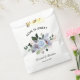 Fleur et feuilles violets élégants et votre libellé en lettre chic, sacs de faveur parfaits pour votre douche nuptiale, mariage ou toute occasion. invitations, enveloppes et plus dans notre magasin.