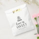 Offrez à vos invités mariages des bonbons emballés dans ces sacs de faveur personnalisés. Design présente une illustration de gâteau mariage de style vintage avec "l'amour est doux" dans le script de calligraphie et la typographie de bloc. Customisez ces sacs fantaisistes mais élégants en noir et blanc avec vos noms et date mariage.