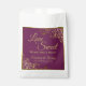 Ces beaux sacs de faveur sont simples, élégants et beaux. Elles présentent un design élégant et élégant, avec des lettrages en or élégants et des boucles en dentelle dorée et des tourbillons sur un arrière - plan couleur cassis violet, magenta ou baies. Le texte dit : L'amour est doux, s'il vous plaît prenez un régal! Il y a de la place pour vos noms et la date du mariage ci-dessous. Merveilleuse et réfléchie façon de remercier vos invités pour la célébration avec vous.