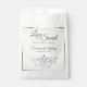 Ces beaux sacs de gâterie sont parfaits pour une table de régal à votre réception de mariage. Elles présentent un joli design boho chic avec un ensemble de feuilles d'eucalyptus peints à la main et des fleurs de lavande dans les tons vert sauge et violet clair. L'élégant texte du script dit "L'amour est doux s'il vous plaît prenez un plaisir" avec la place pour les noms du couple et mariage date.