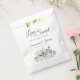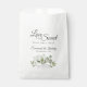 Ces beaux sacs de gâterie sont parfaits pour une table de régal à votre réception de mariage. Elles présentent un joli design boho chic avec un ensemble de feuilles d'eucalyptus peints à la main et de verdure dans les tons menthe, mousse et vert sauge. L'élégant texte du script dit "L'amour est doux s'il vous plaît prenez un plaisir" avec la place pour les noms du couple et mariage date.