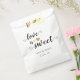 Sacs de mariage et de douche nuptiale personnalisés avec coeur de parties scintillant or avec "L'amour est doux" script brossé à la main. Choisissez parmi des sacs en papier blanc, écru ou kraft.