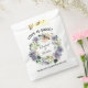 Fleurs et feuilles violettes élégantes et votre texte en lettre chic, ces sacs de faveur sont parfaits pour votre douche de mariée, mariage ou toute occasion. Cartes d'invitation, assiettes, serviettes et plus encore dans notre magasin.