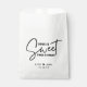 Un sac de faveur de mariage moderne et chic à offrir à vos invités. Il dispose d'une combinaison de police simple moderne et de calligraphie lettrant disant "L'amour est doux Prenez un soin" Personnalisez-le avec vos noms et date mariage.