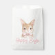 Rendez votre célébration de Pâques encore plus douce avec ces adorables sacs de faveurs représentant un charmant lapin aquarellé portant un nœud rose pâle et « Joyeuses Pâques » en écriture délicate. Les tons pastel doux et le fond blanc minimaliste créent une apparence propre et élégante parfaite pour les festivités printanières.