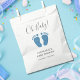 Ce mignon sac de faveur pour Baby shower garçon est décoré avec la typographie moderne et les pieds de bébé mignon en parties scintillant bleue. Facile à personnaliser.