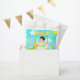 Ce mignon et fantaisiste sac de faveur dispose d'un fils à cheveux noirs avec peau claire sur un stand de limonade jaune qui est décoré de fleurs et de bouts. Dans l'arrière - plan est un ciel bleu, soleil et papillons. Le texte combine les polices décoratives et sans serif pour un look élégant et moderne. C'est parfait pour un anniversaire d'été. Graphiques de MUJKA
