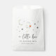 Thank your guests with spooky-cute flair using this Halloween baby shower favor bag from Redwood & Vine Design Co. The white paper bag features a cheerful ghost illustration, crescent moon, and scattered stars, along with the phrase “a little boo is almost due.” Perfect for wrapping cookies, candy, or other take-home treats at an October baby shower. A charming and festive finishing touch for your fall celebration.
