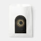 Sacoche de faveur de mariage mystique celestiale avec cadre en arc avec galaxie laiteuse façon ciel de minuit, poussière d'étoile, lune croissant et autres symboles astrologiques en couleurs noir et or et citation écrite "Merci de célébrer avec nous". Ce produit est facilement modifiable. Si vous avez besoin d'aide pour la personnalisation de ce produit ou si vous avez besoin de plus de produits correspondants pour cette collection, envoyez-moi un message aimable via Zazzle.