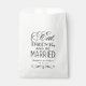 Les sacs de faveur de mariage présentent un élégant design de typographie mixte "Manger, Boire et Être Marié" noir avec un monogramme qui peut être personnalisé.
