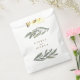 Elégante aquarelle botanique sacs de faveur mariage avec de belles branches d'olivier dessinées à la main encadrant vos détails mariages. Personnalisez avec vos noms dans la typographie couleur nature.