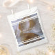 Cette plage de sable blanc est dotée de palourdes en coquillages. Design mariage à thème plage avec collier arrière - plan et texte blanc. Les lignes blanches créant des rubans sont positionnées au-dessus et au-dessous du texte. C'est la destination parfaite de la plage conception de mariage idéal pour toutes les saisons. Elégant mariage de plage design de sac de faveur avec des éléments modernes. Des invitations de mariage et d'autres articles de papeterie sont également disponibles.