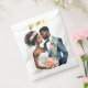 L'aquarelle présente un beau couple à la peau brune comme mariée et mariée. Cet article mélané a une palette de couleurs pêche et corail avec des accents floraux.