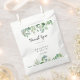 Ces sacs verts eucalyptus calligraphie merci mariage sont parfaits pour un mariage moderne. Le design est composé de beaux feuilles peints à la main et d'eucalyptus verts, assemblés en bouquets soignés pour agrémenter votre événement. Customisez les sacs à gâteaux avec un bref message de gratitude, y compris vos noms et la date. Utilisez ces sacs pour compléter une réception de mariage, une douche nuptiale, tout événement ou fête. Le design sobre et élégant présente une typographie de script classique et sophistiquée en noir et blanc.