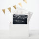Ces lampes à cordes rustiques merci sacs de faveur mariage sont parfaits pour un mariage moderne. Le design présente de belles lumières à cordes peintes à la main dans un arrière - plan bleu foncé. Customisez les sacs à gâteaux avec un bref message de gratitude, y compris vos noms et la date. Utilisez ces sacs pour compléter une réception de mariage, une douche nuptiale, tout événement ou fête. Le design sobre et élégant présente une typographie de script classique et sophistiquée en noir et blanc.