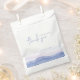Mariage Favor Sac avec Matin paysage de montagne. Paysage naturel bleu doux. Silhouettes de montagnes et de fleurs de pissenlit. Aquarelle peinture arrière - plan mariage Favor sac. Collection de Montagnes Violettes.