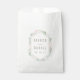 Merci à vos invités mariages pour quelques douceurs dans ces sacs de faveur personnalisés, conçus pour correspondre à notre collection de mariages Seaside Pastels. Le design présente une forme allongée d'hexagone géométrique flanquée d'illustrations de la vie marine - coquillages, étoiles de mer, algues et nausolées - dans des pastels de plage aérés. Ajoutez vos noms et votre date de mariage en lettres sablonneuses.
